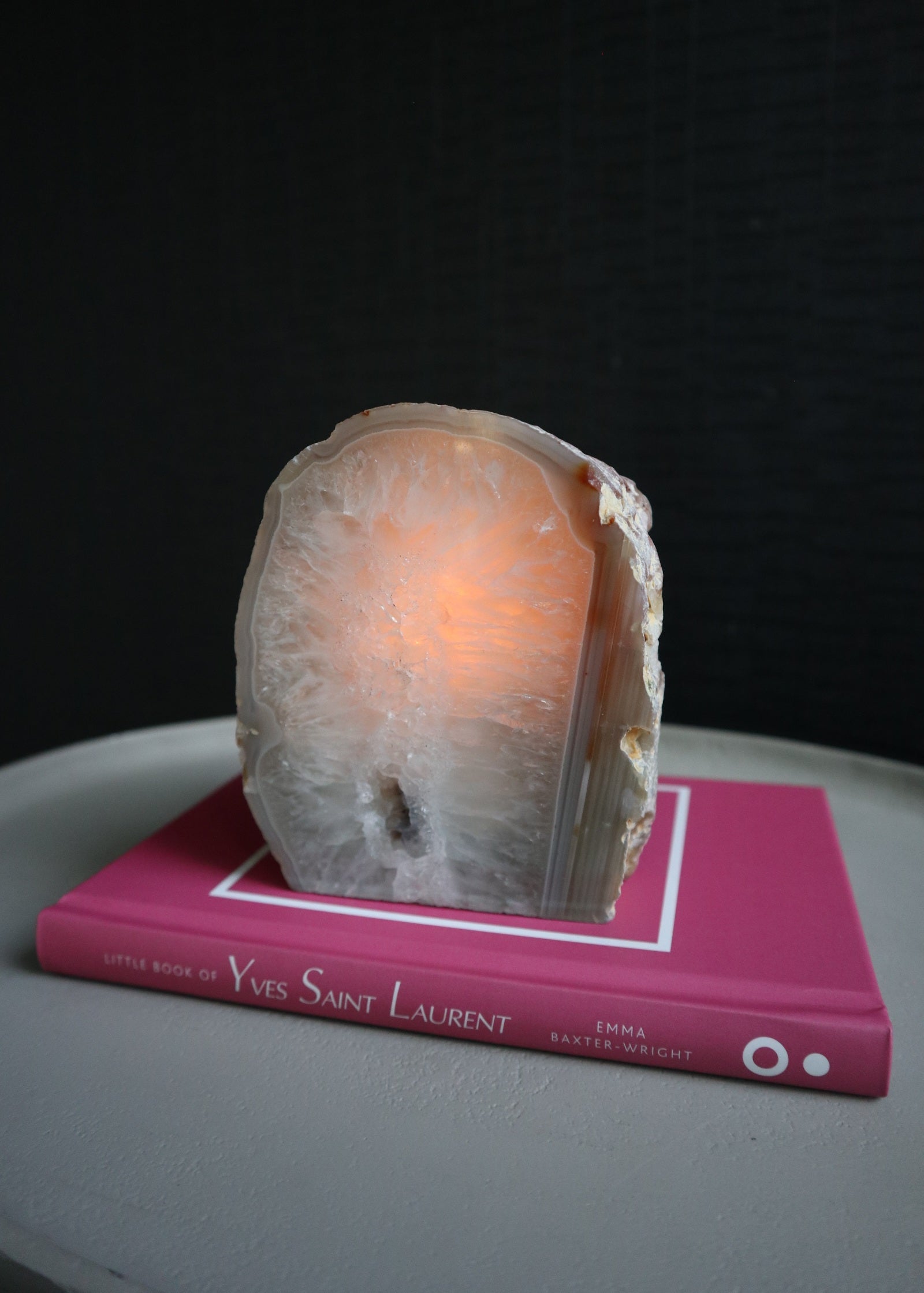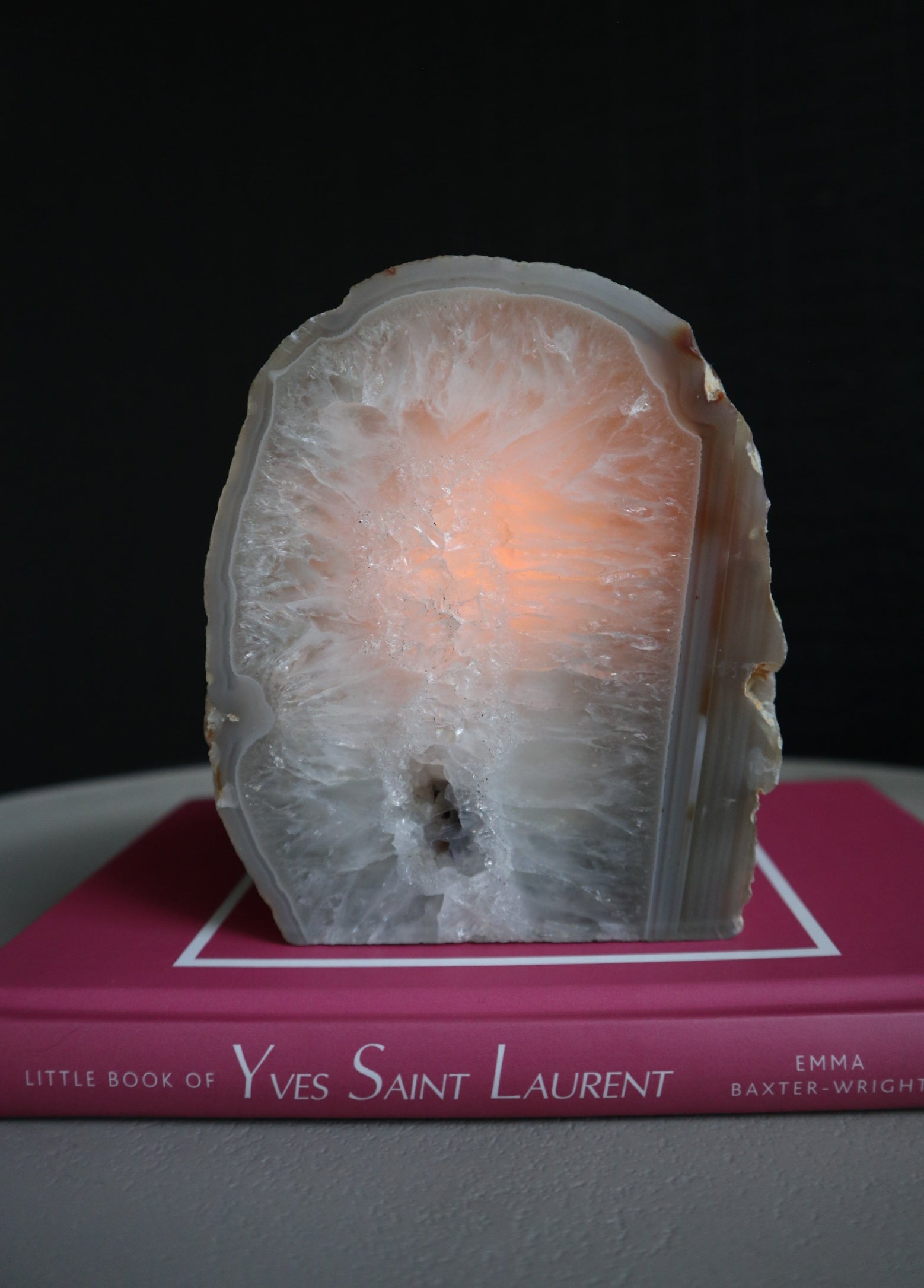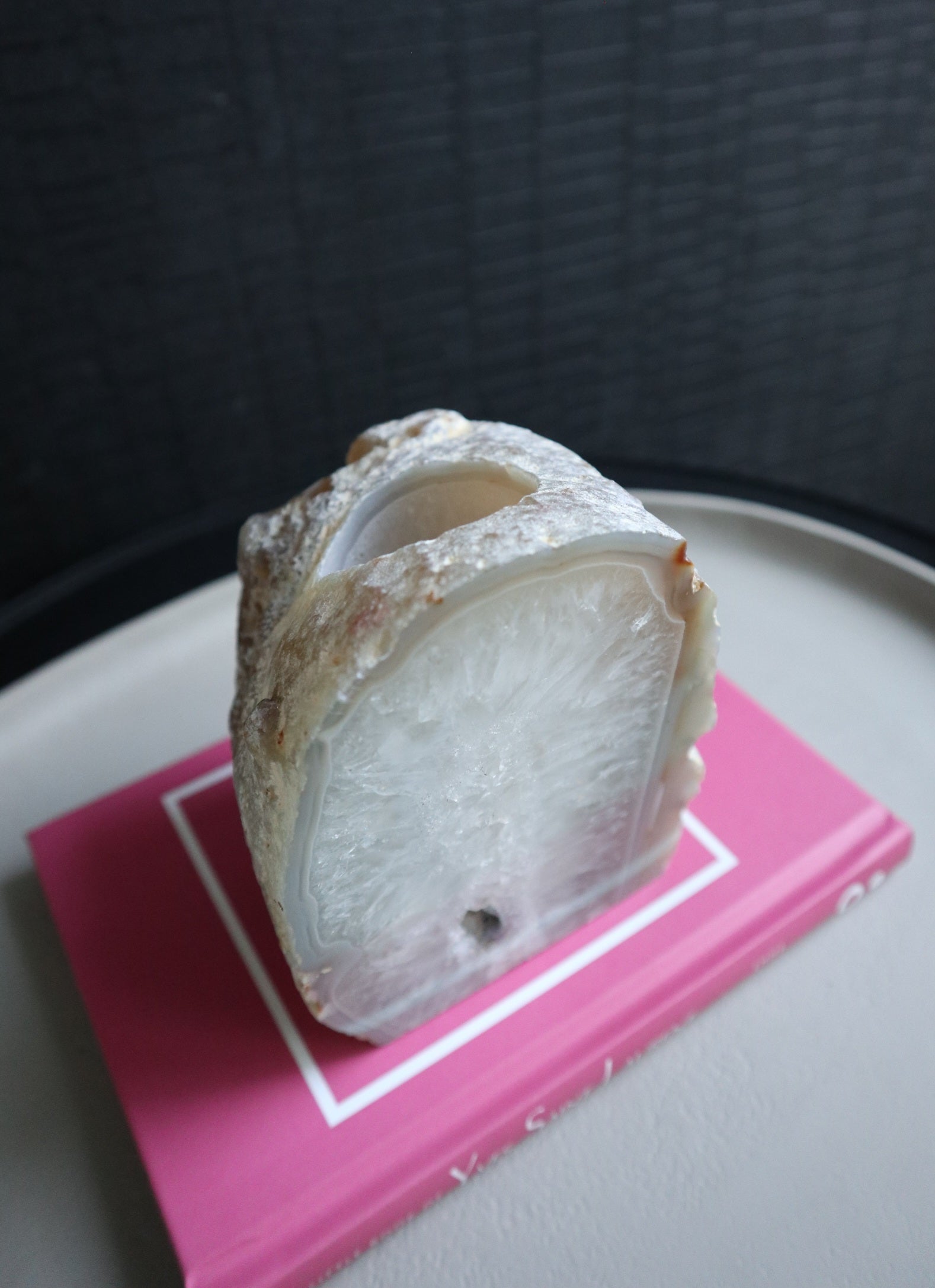 Ontdek de magie van natuurlijke stenen en voeg een vleugje rust, licht en luxe toe aan je interieur met deze unieke Agaat waxinelichthouder van Living and Crystals.