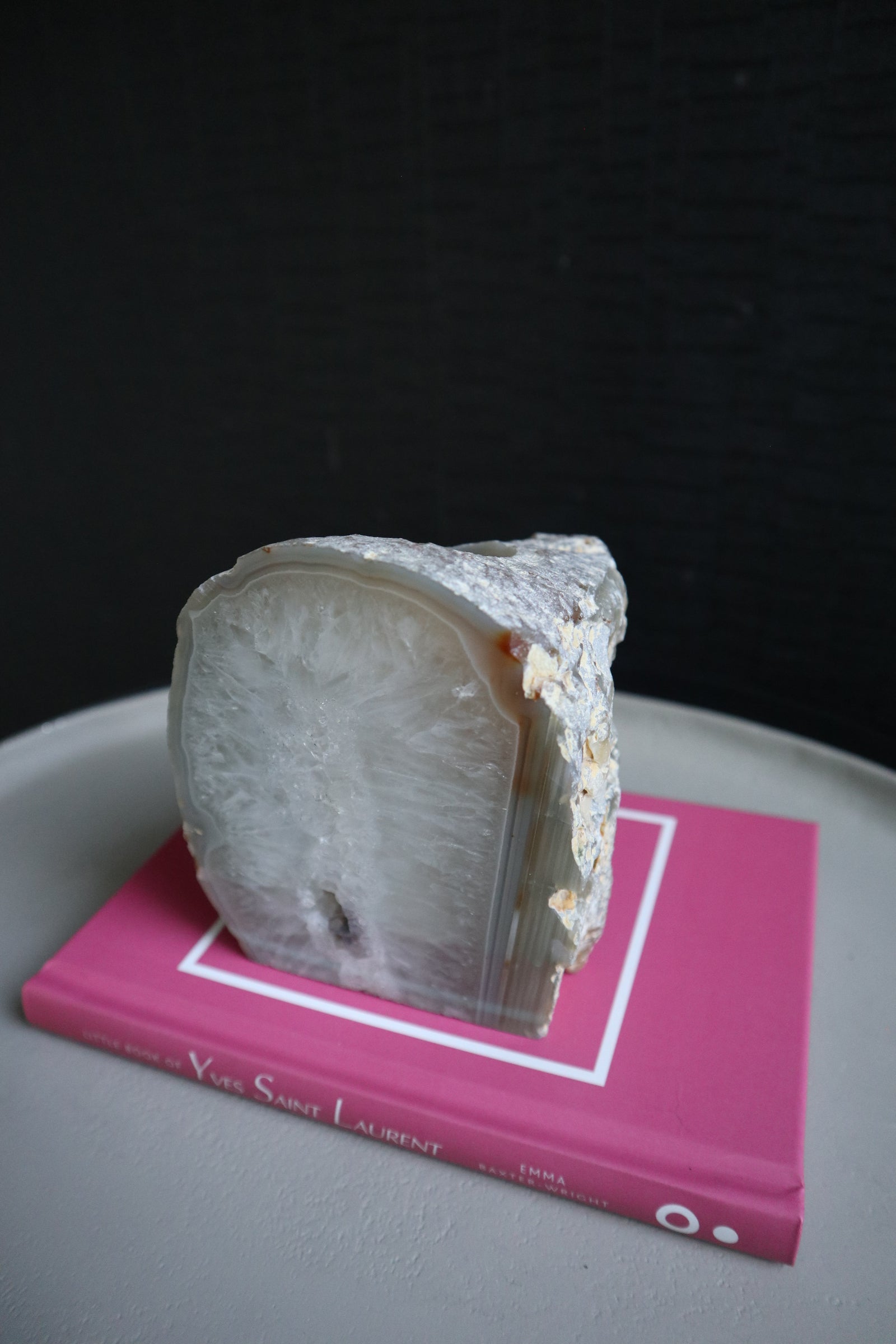 De waxinelichthouder van agaat is gemaakt van een halfedelsteen die bekendstaat om zijn bijzondere patronen en schitterende kleurschakeringen. Agaat behoort tot de kwartsgroep en ontstaat in gesteenten met natuurlijke scheuren of holtes, zoals vulkanisch gesteente en basalt.