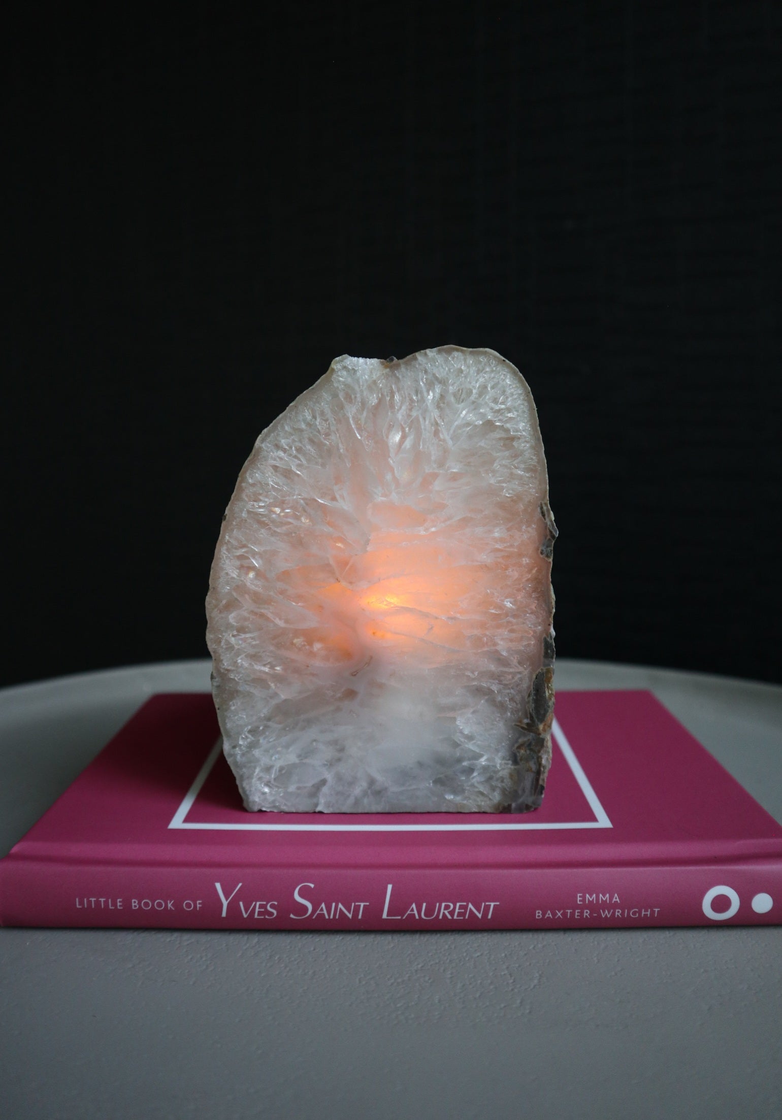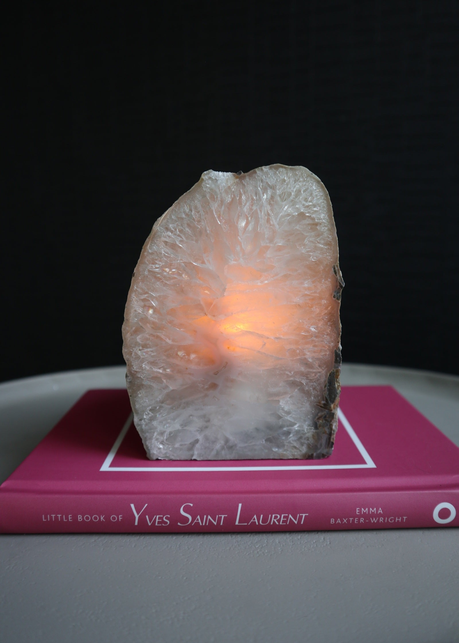 Ontdek de magie van natuurlijke stenen en voeg een vleugje rust, licht en luxe toe aan je interieur met deze unieke Agaat waxinelichthouder van Living and Crystals. 🌙