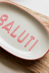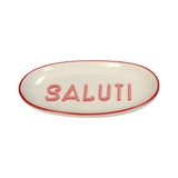 Ovaal Wit Steengoed Bord met Tekst "SALUTI" – 21×12.5×2.5 cm