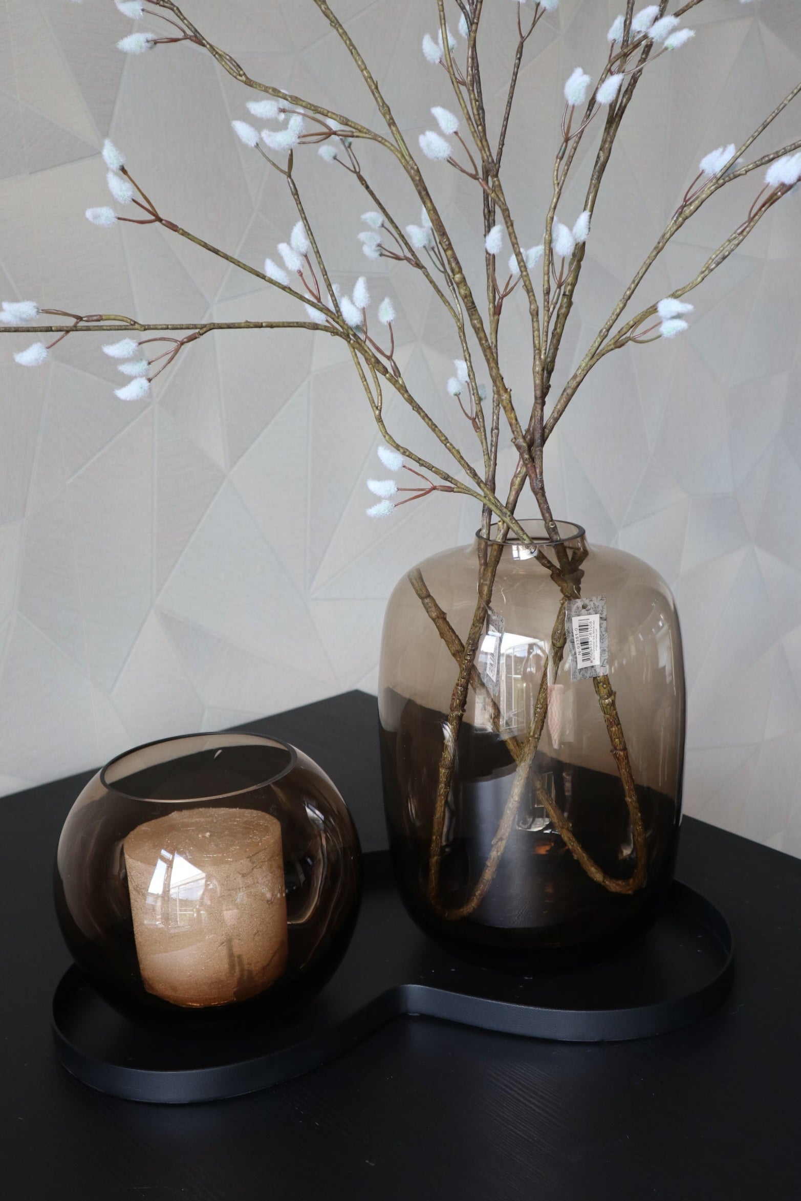 Dit metalen dienblad is niet alleen een designstatement, maar ook perfect om jouw favoriete woonaccessoires stijlvol te presenteren. Onze prachtige smoke-items, zoals sfeervolle windlichten, passen hier perfect bij en creëren een warme, elegante setting in je interieur.