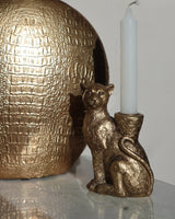 Geef je interieur een exotische touch met deze unieke kandelaar in de vorm van een luipaard. Dit decoratieve pronkstuk straalt kracht, elegantie en stijl uit, en is perfect voor liefhebbers van een gedurfde inrichting.