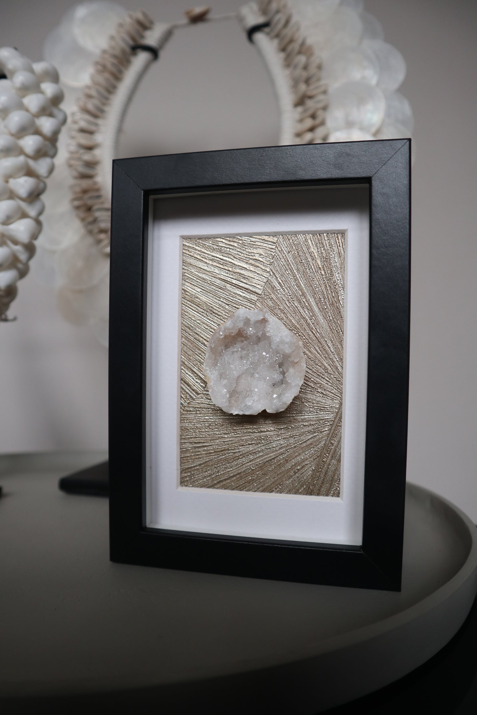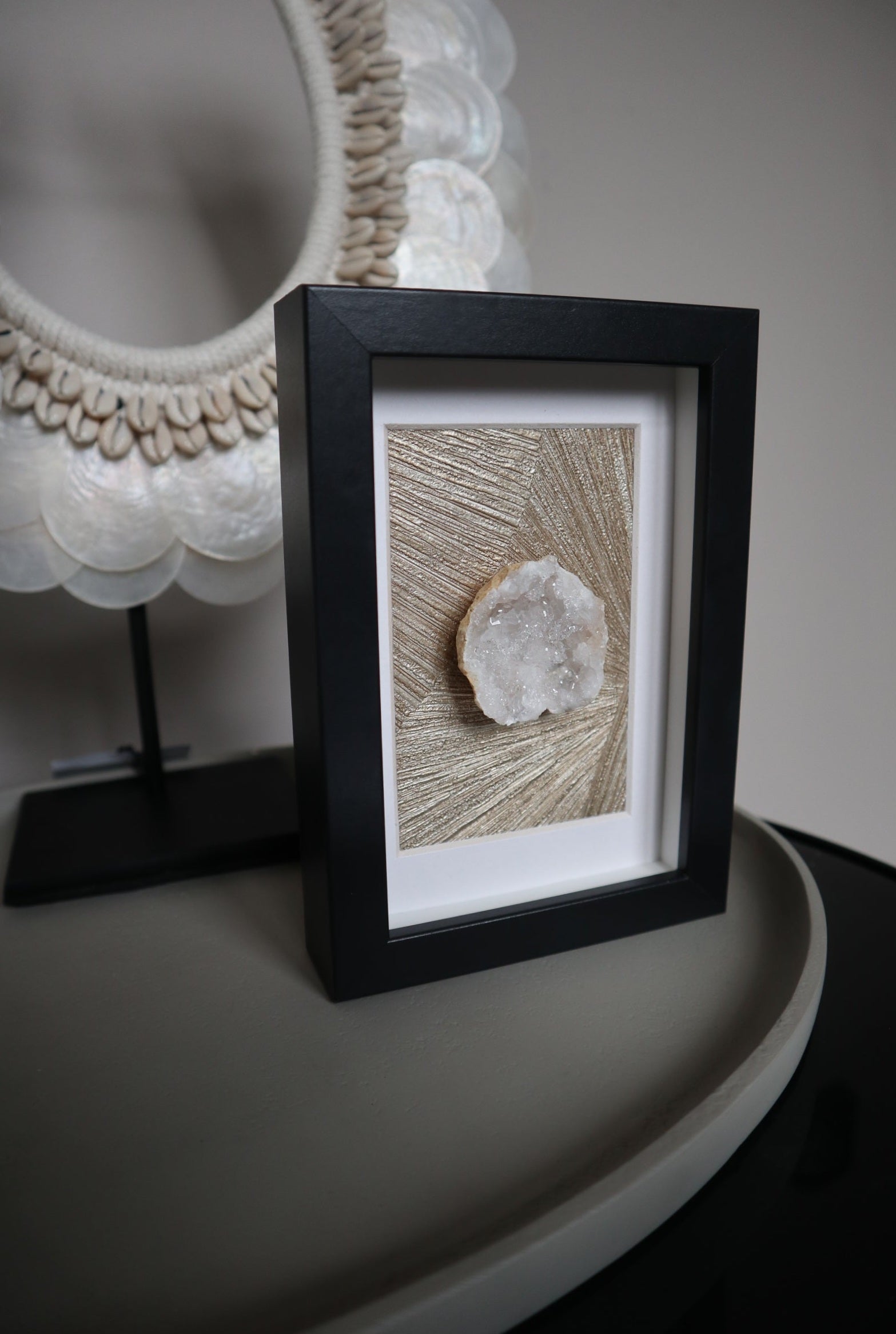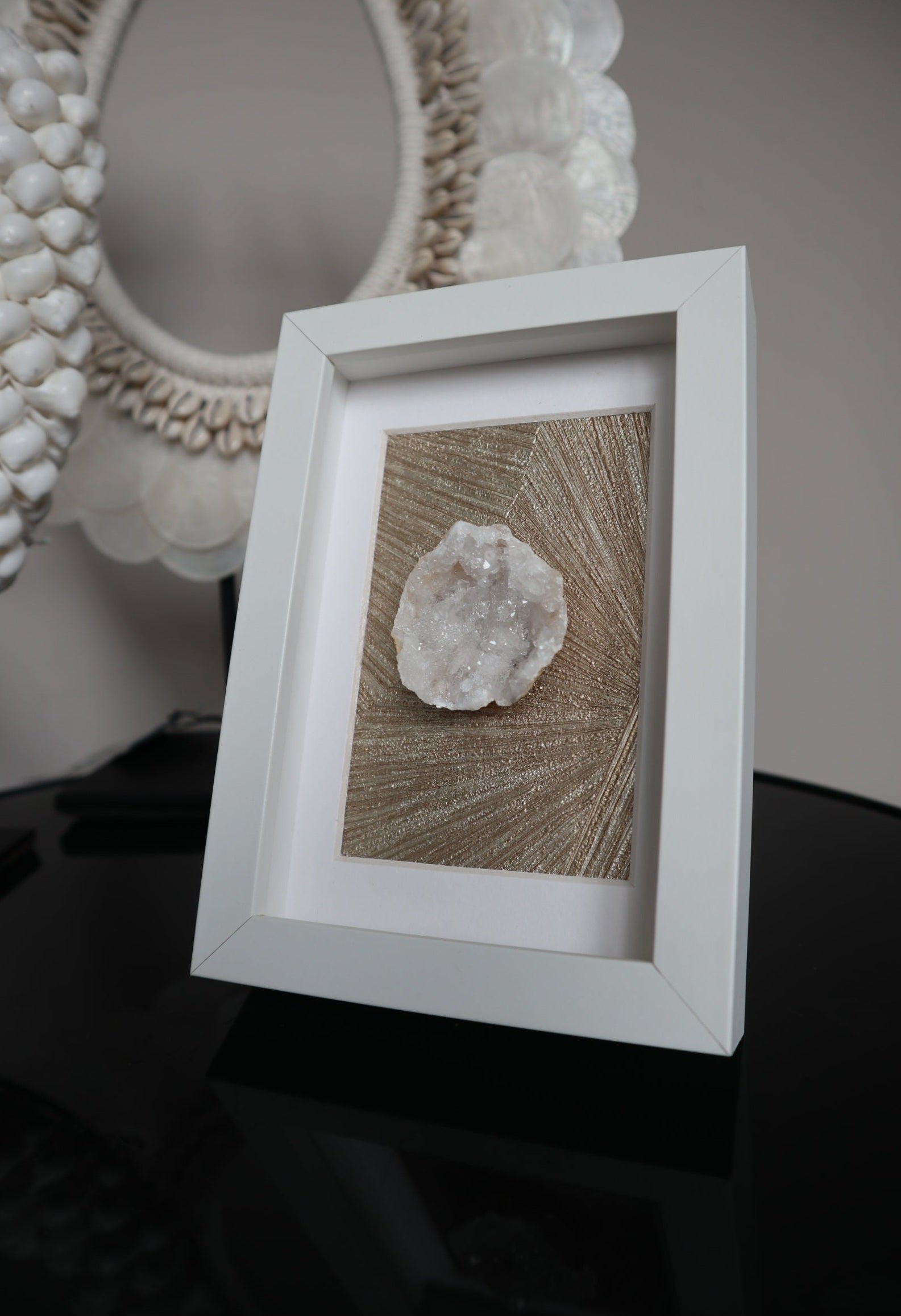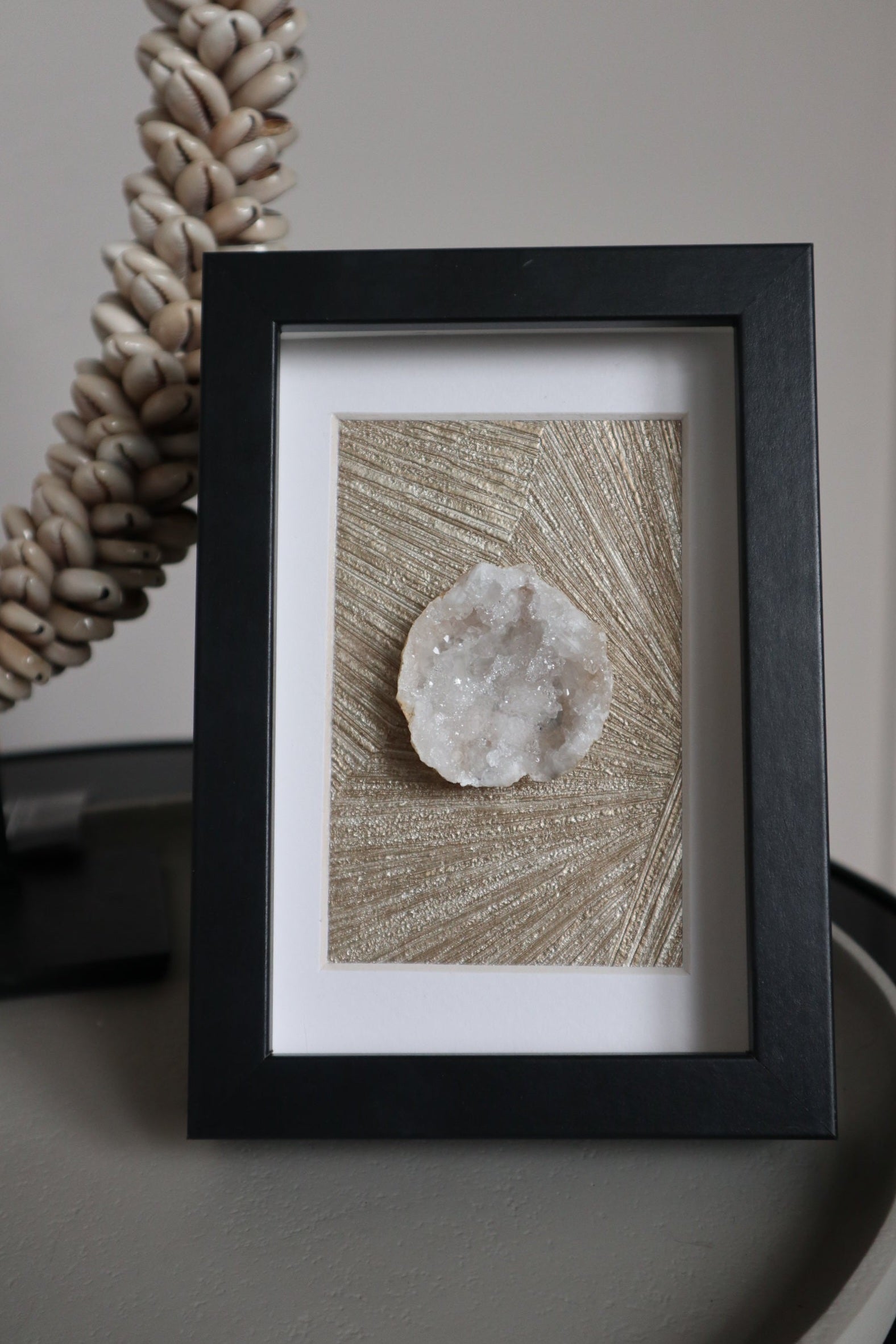 Edelstenen en mineralen zijn niet alleen een prachtige toevoeging aan je interieur op een sokkel, tafelboek of standaard, maar komen ook schitterend tot hun recht in een stijlvolle lijst.