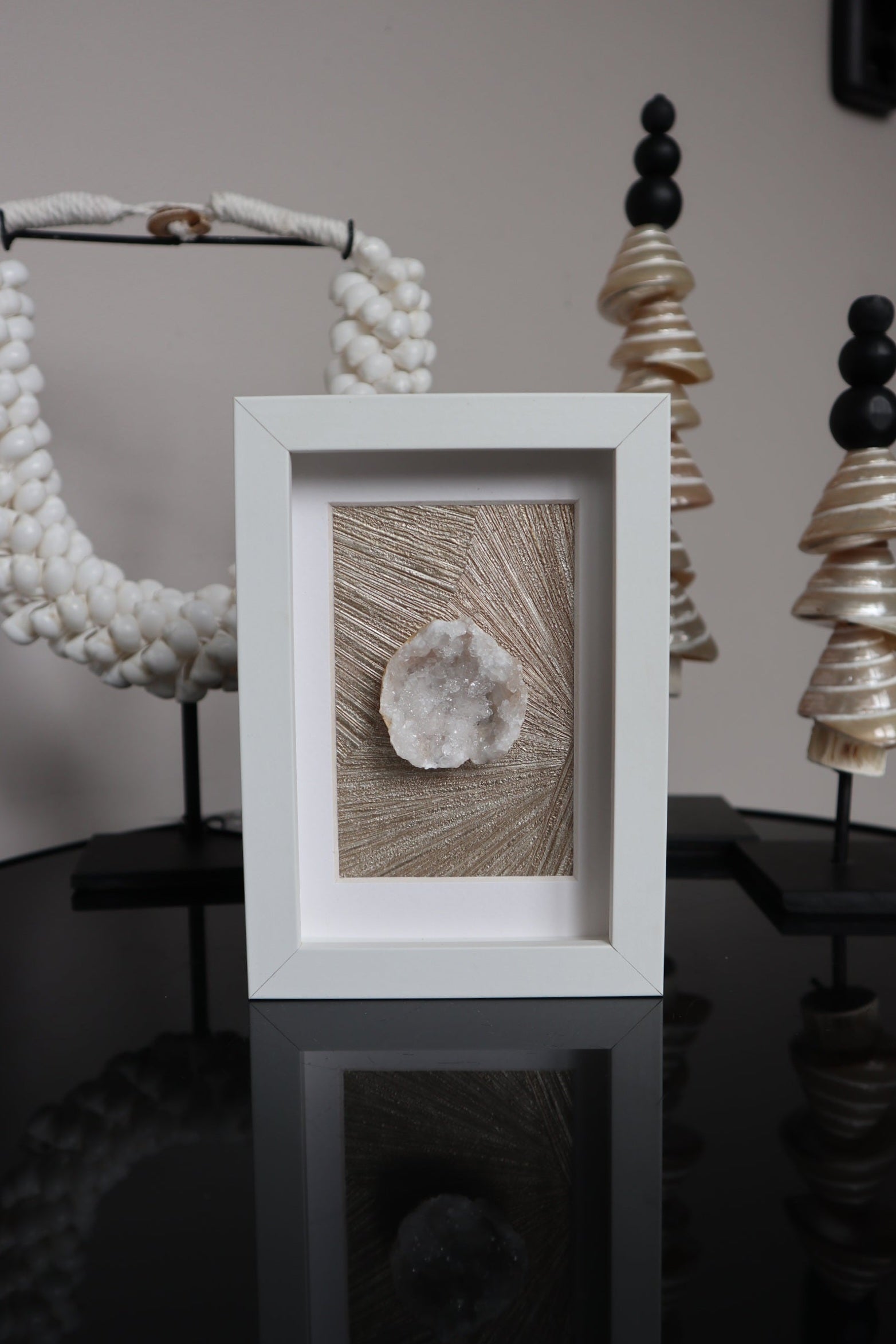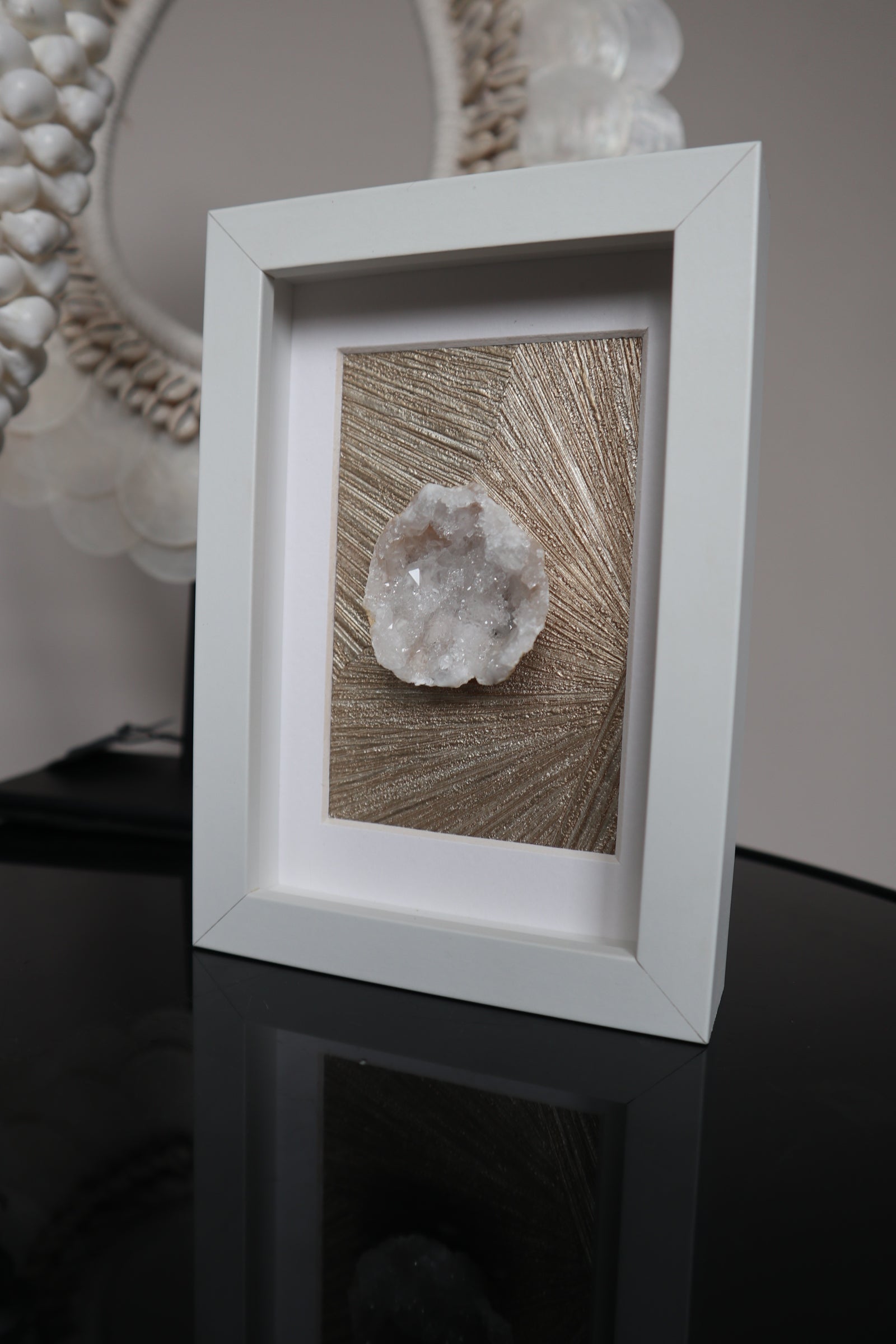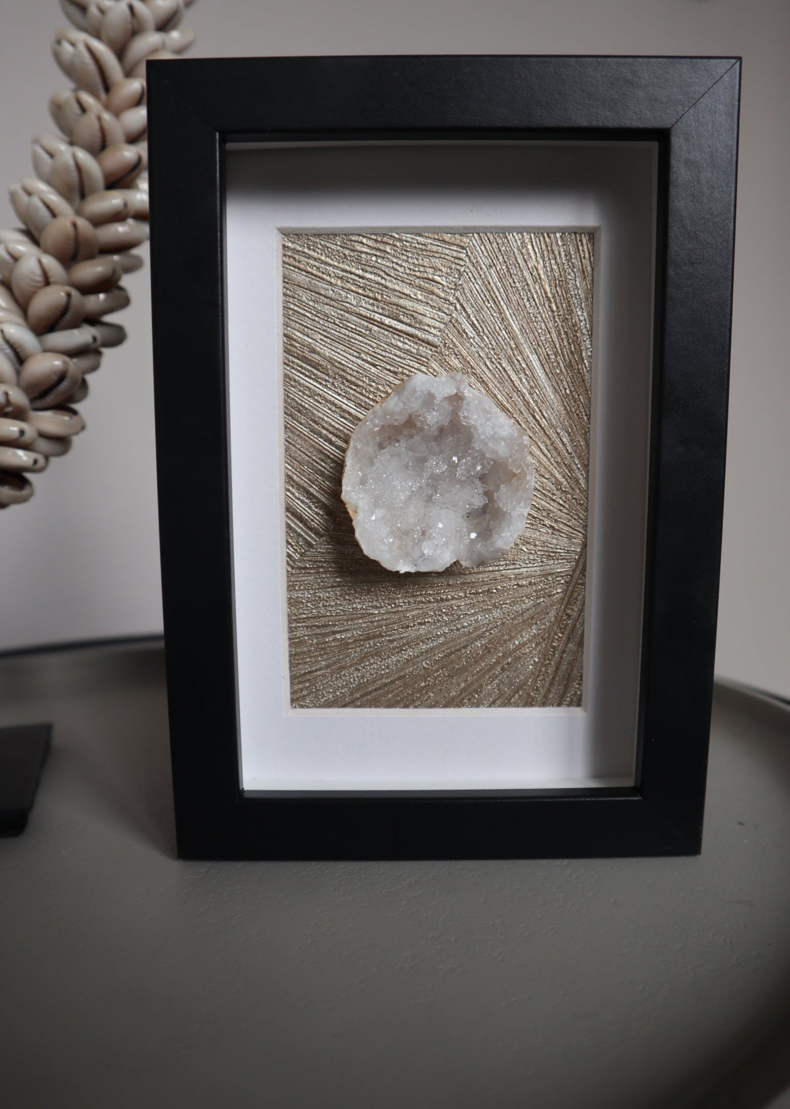 Bergkristal Geode in Lijst – Unieke Decoratie met Edelstenen