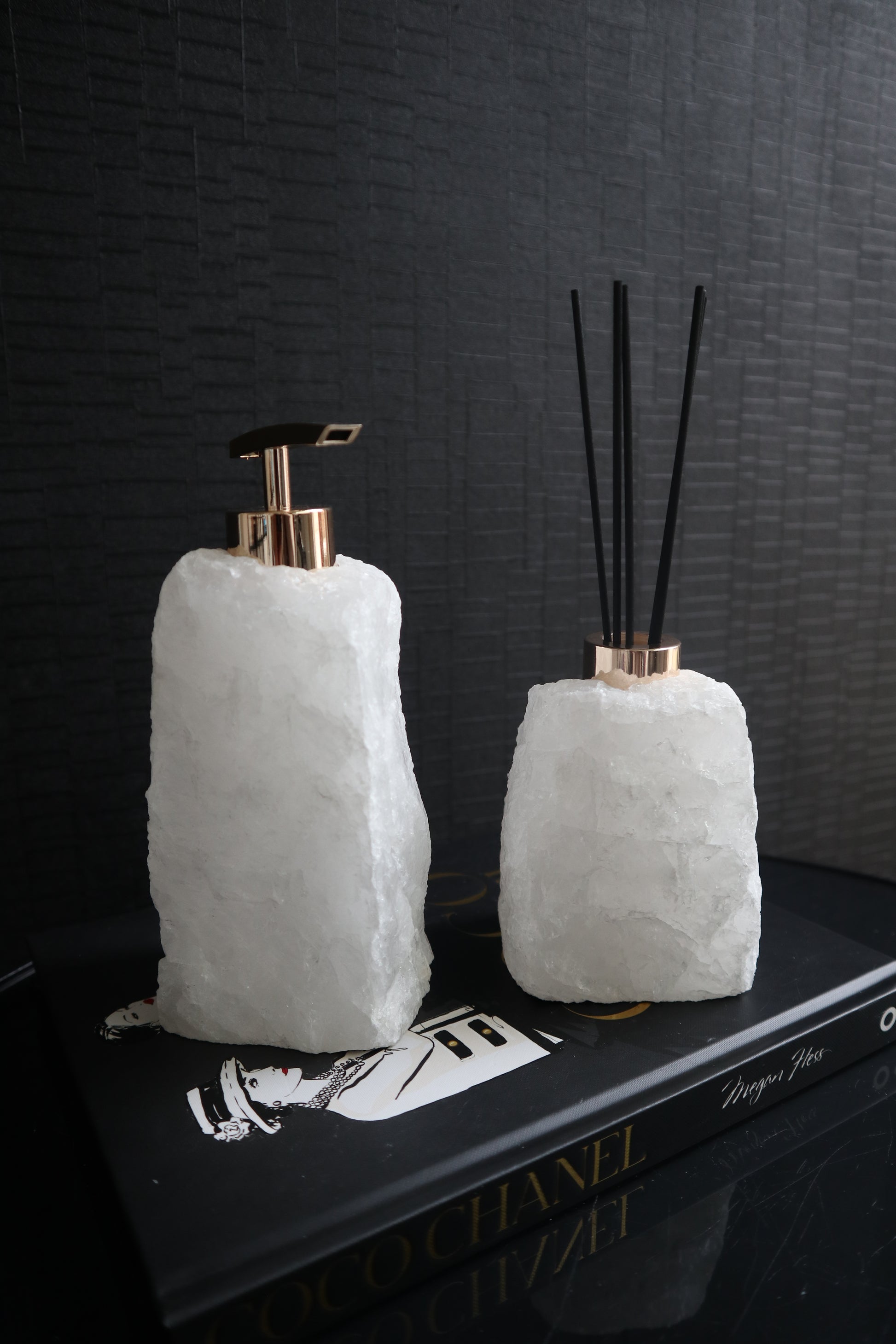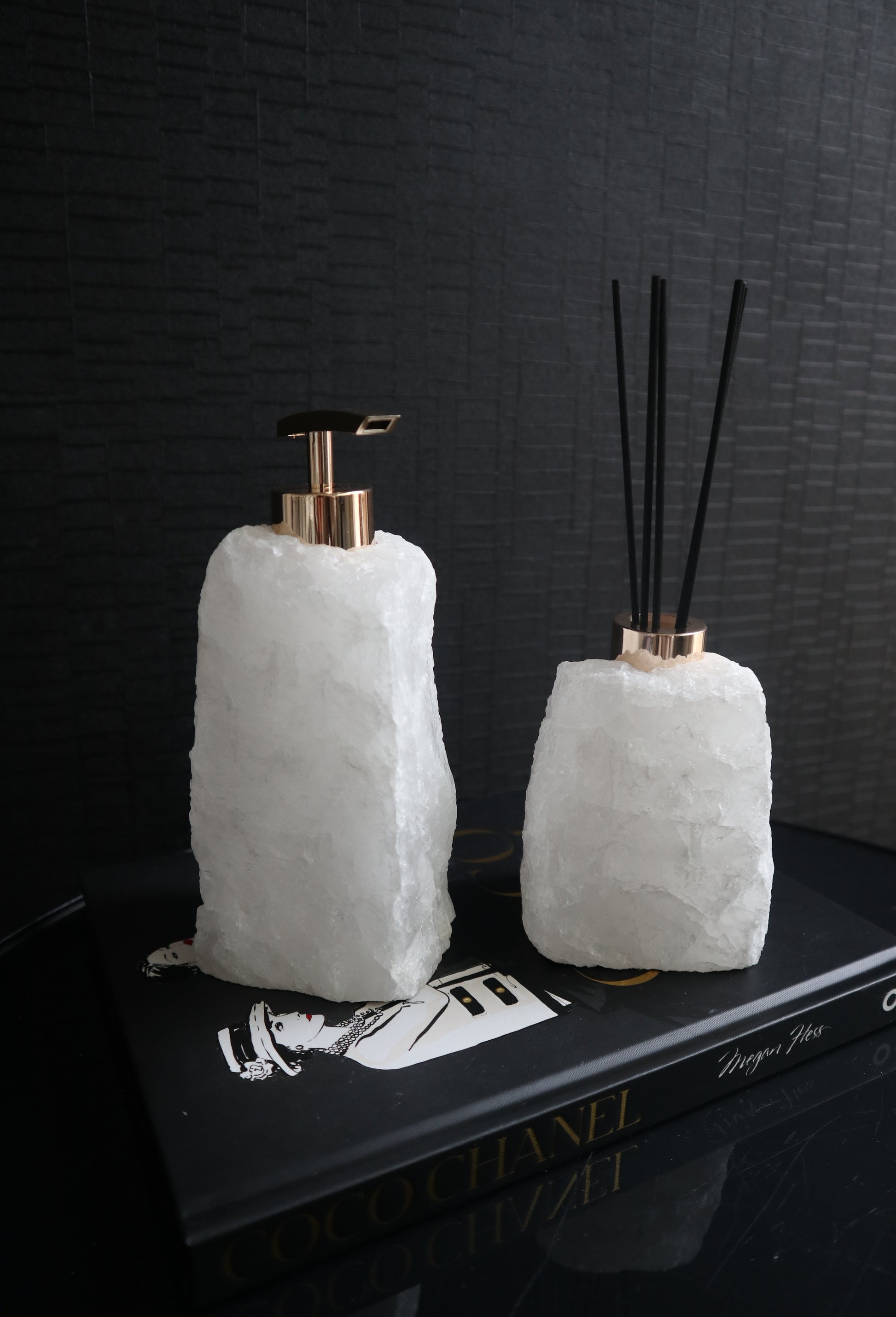 Bergkristal Set | Zeepdispenser en Geurstokjes Diffuser