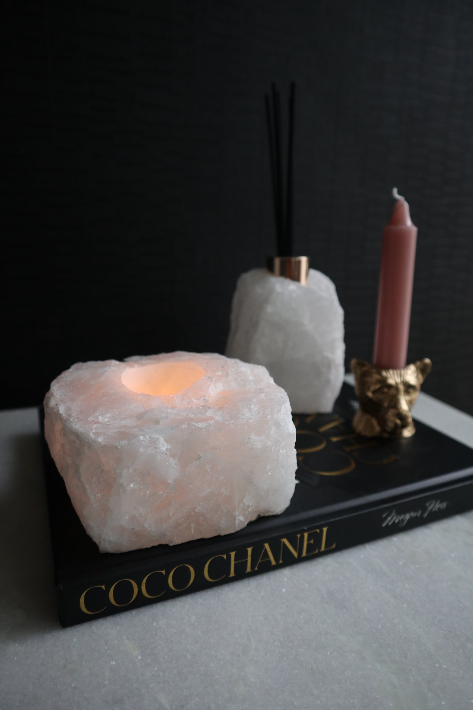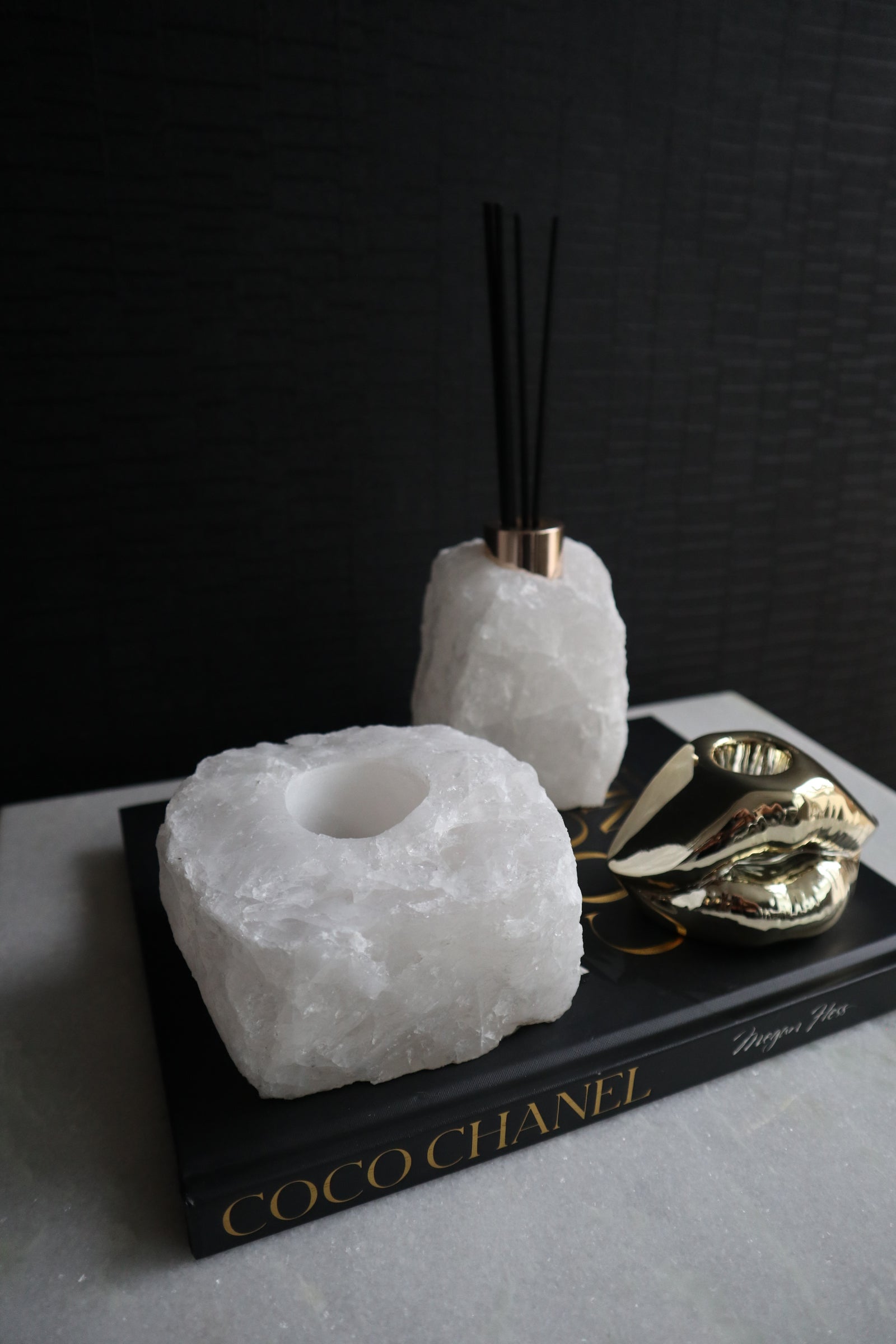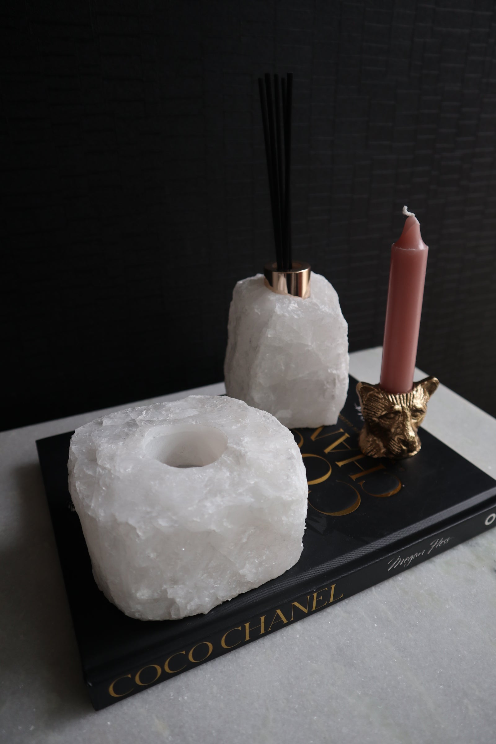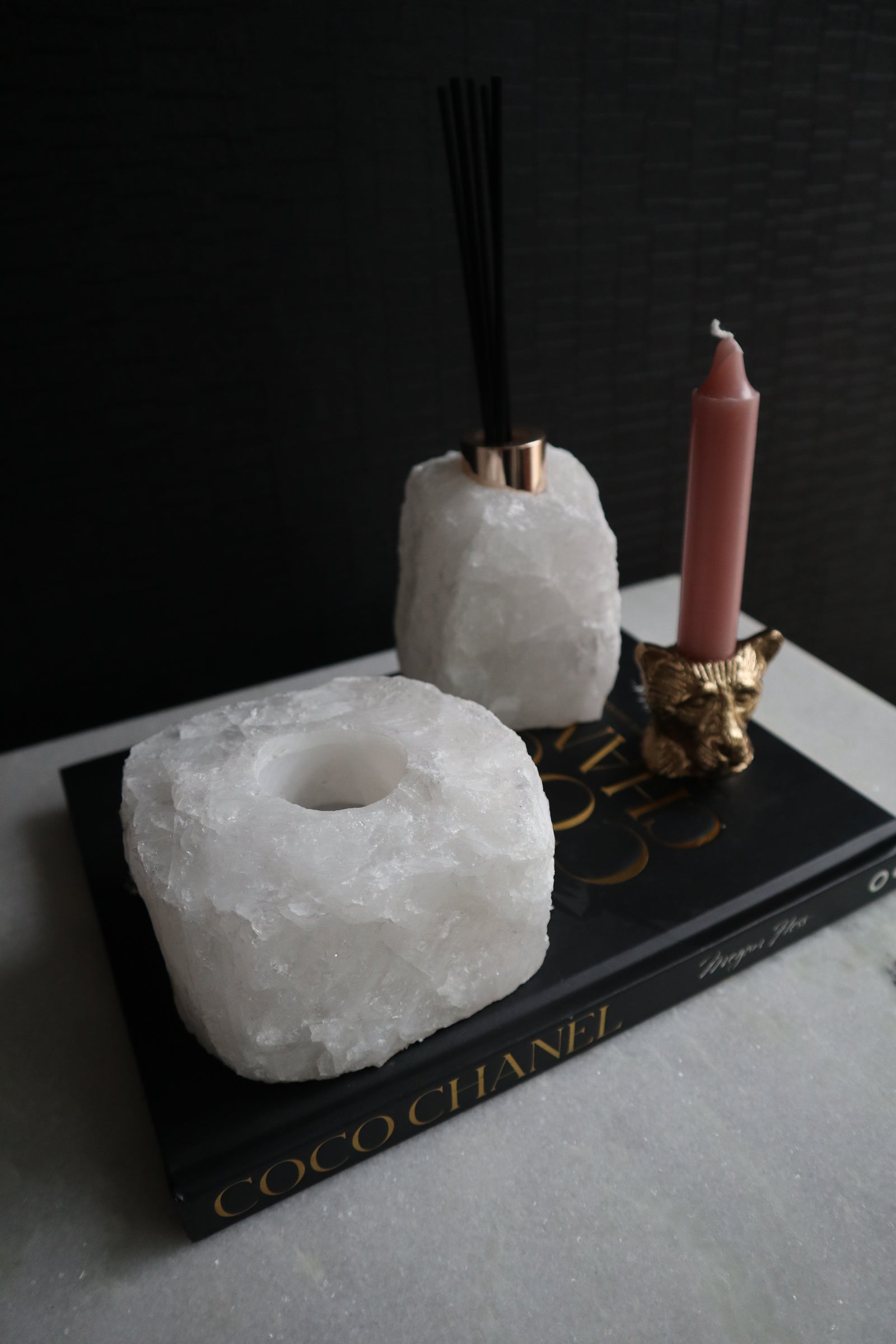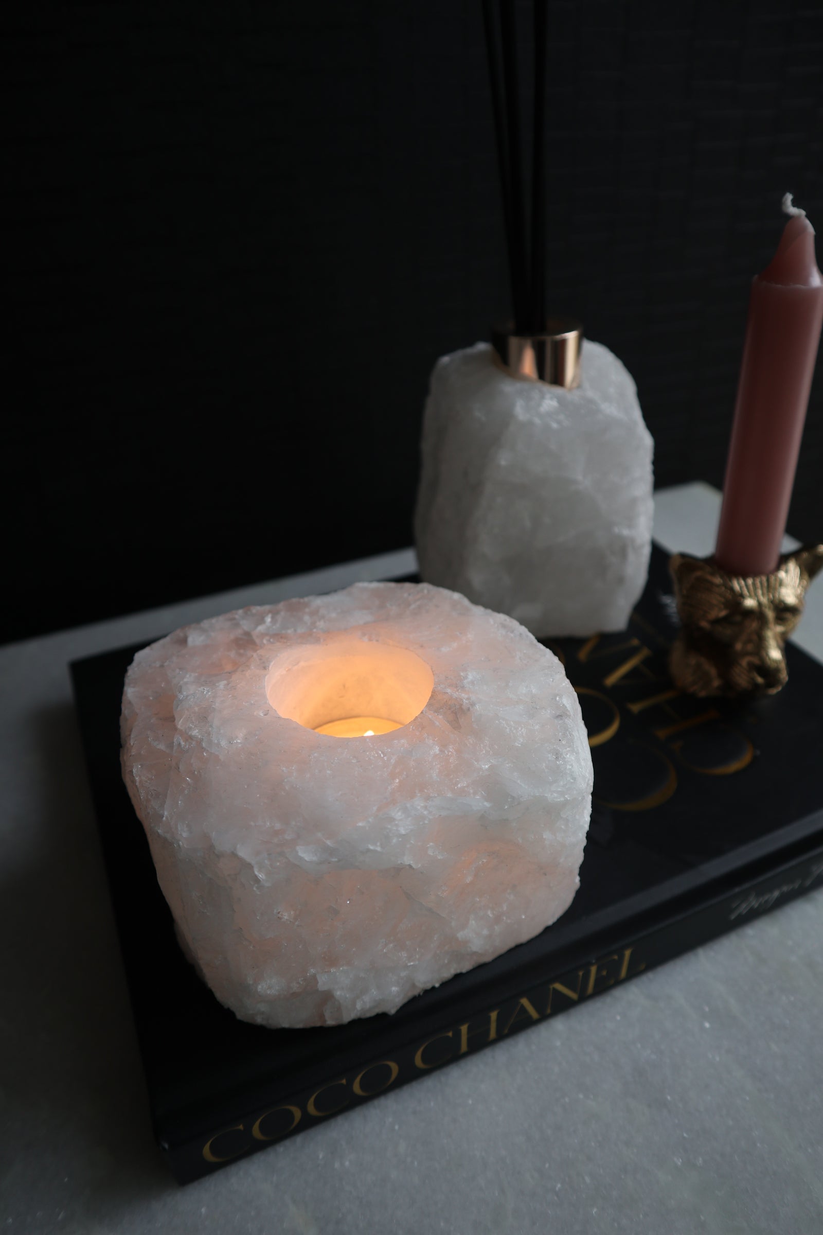 Bergkristal Waxinelichthouder – Unieke Natuurlijke Sfeer in Huis