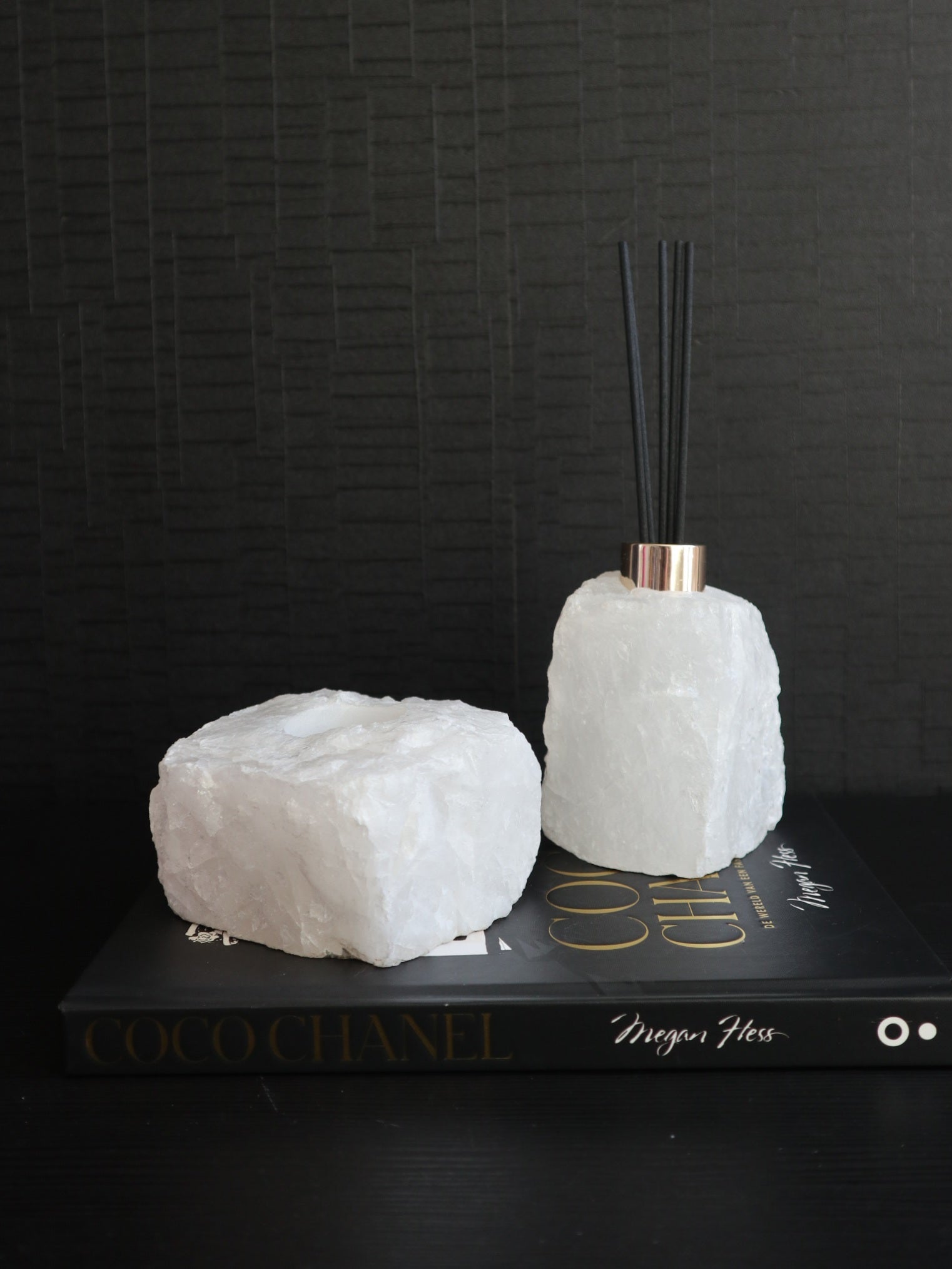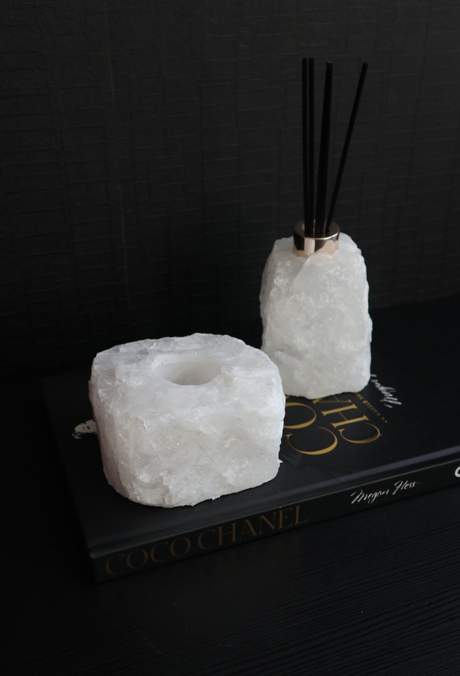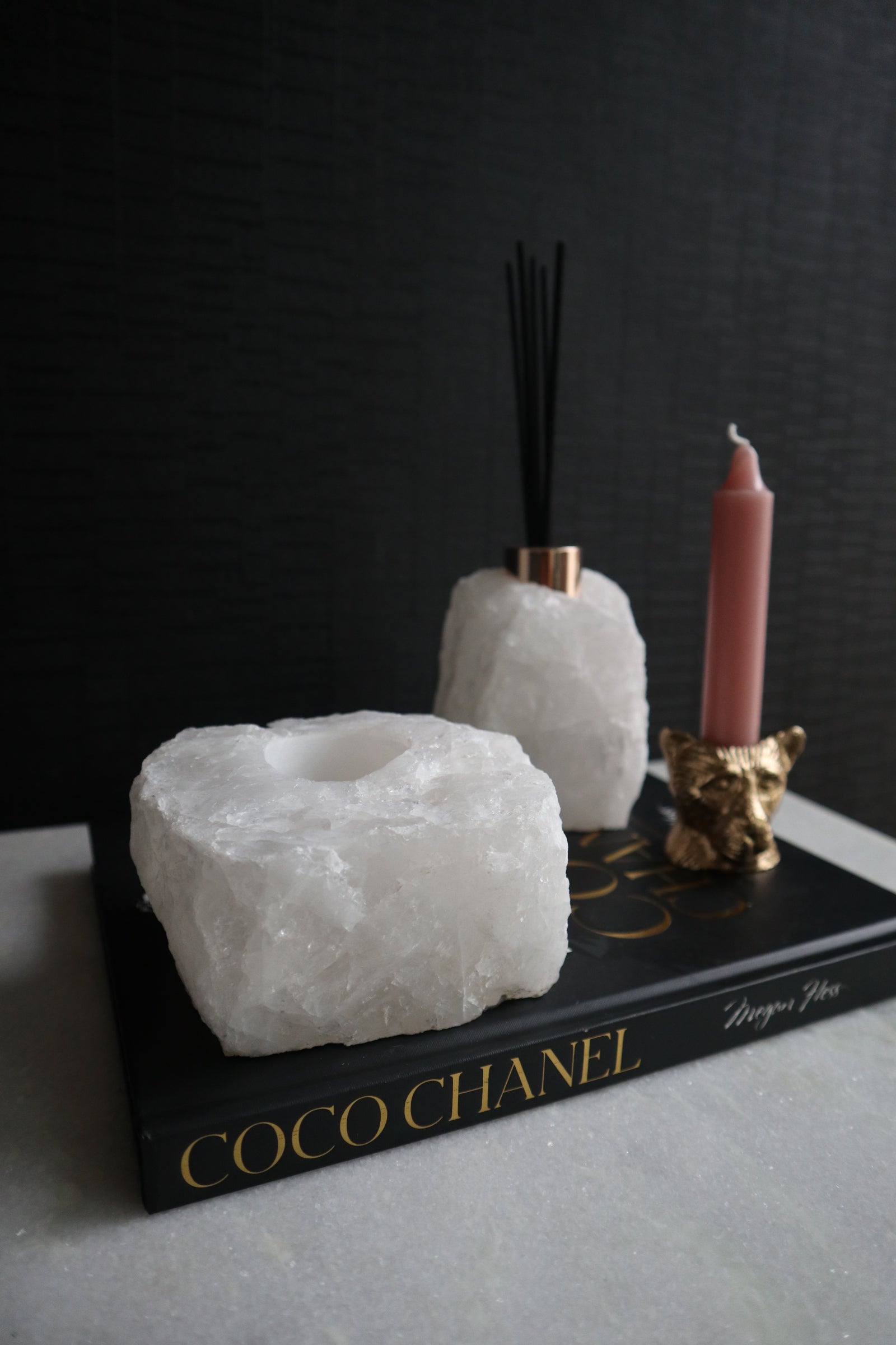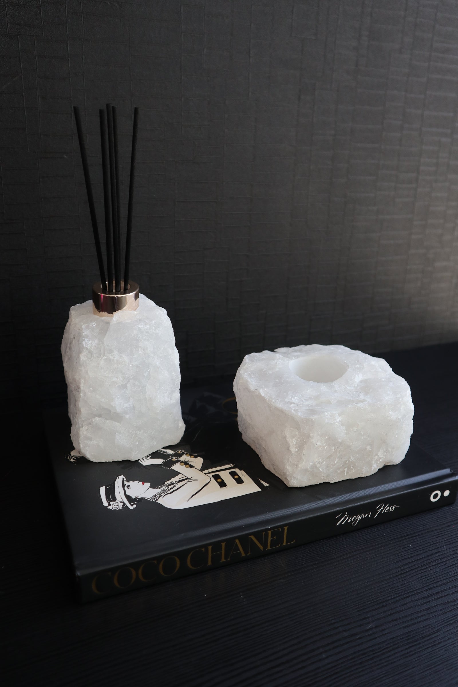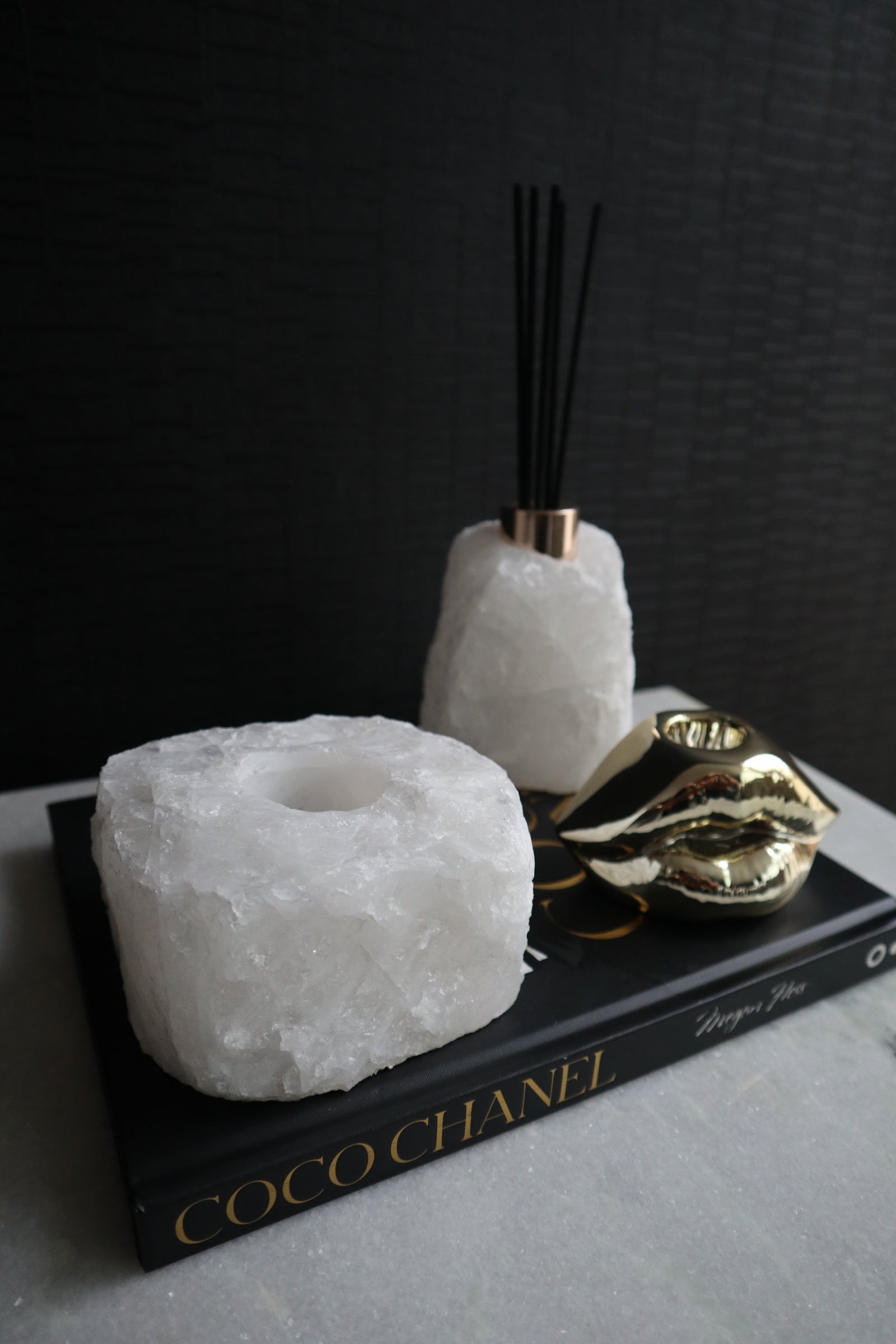 Bergkristal Waxinelichthouder – Unieke Natuurlijke Sfeer in Huis