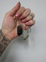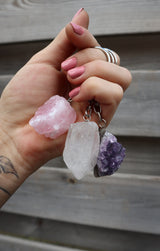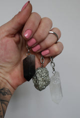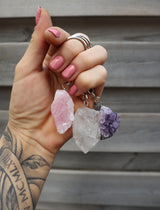 De edelsteen sleutelhangers zijn verkrijgbaar in de varianten Rozenkwarts, Bergkristal, Amethist, Pyriet en Rookkwarts. Choose your favorite🥹😍