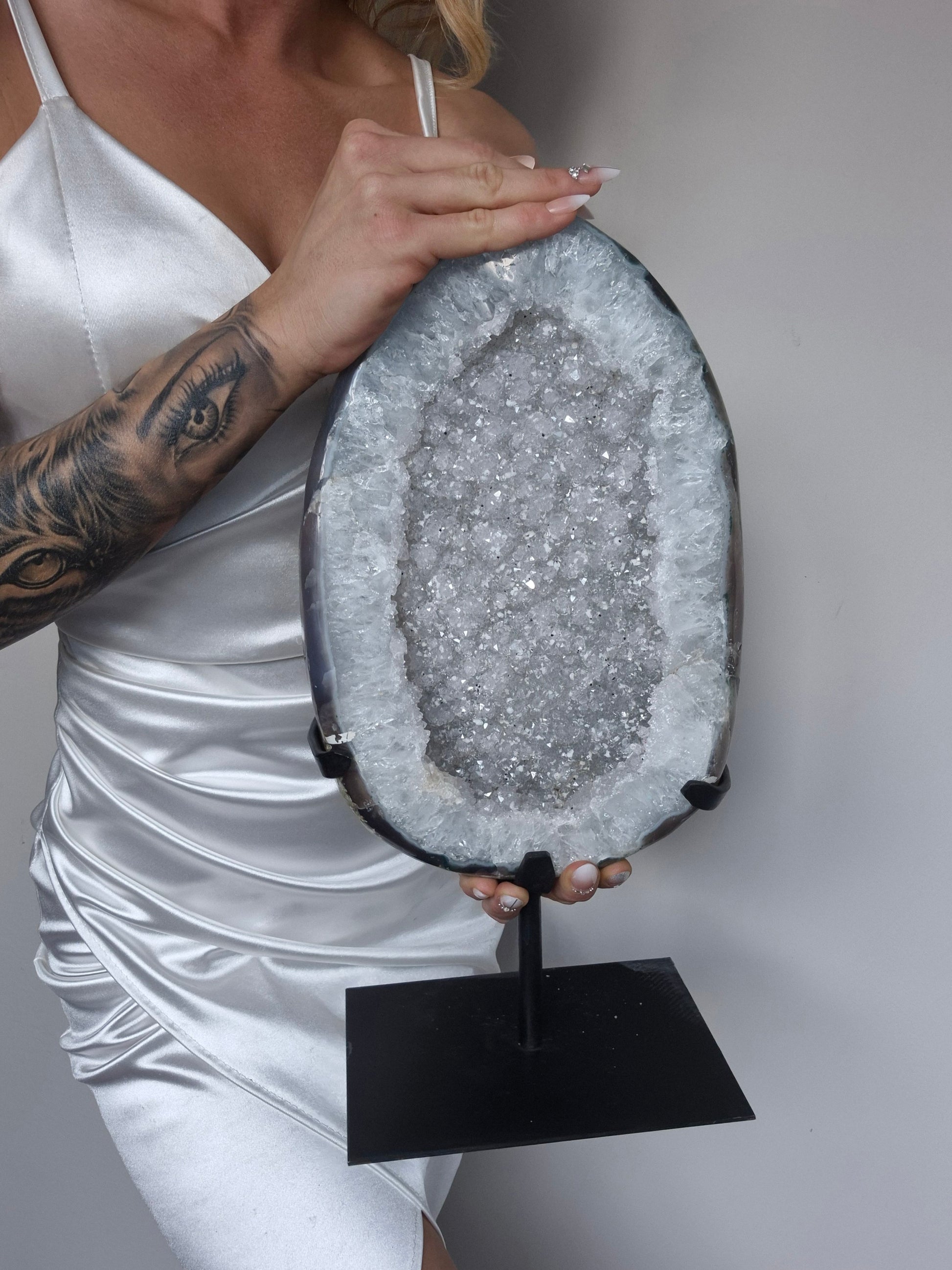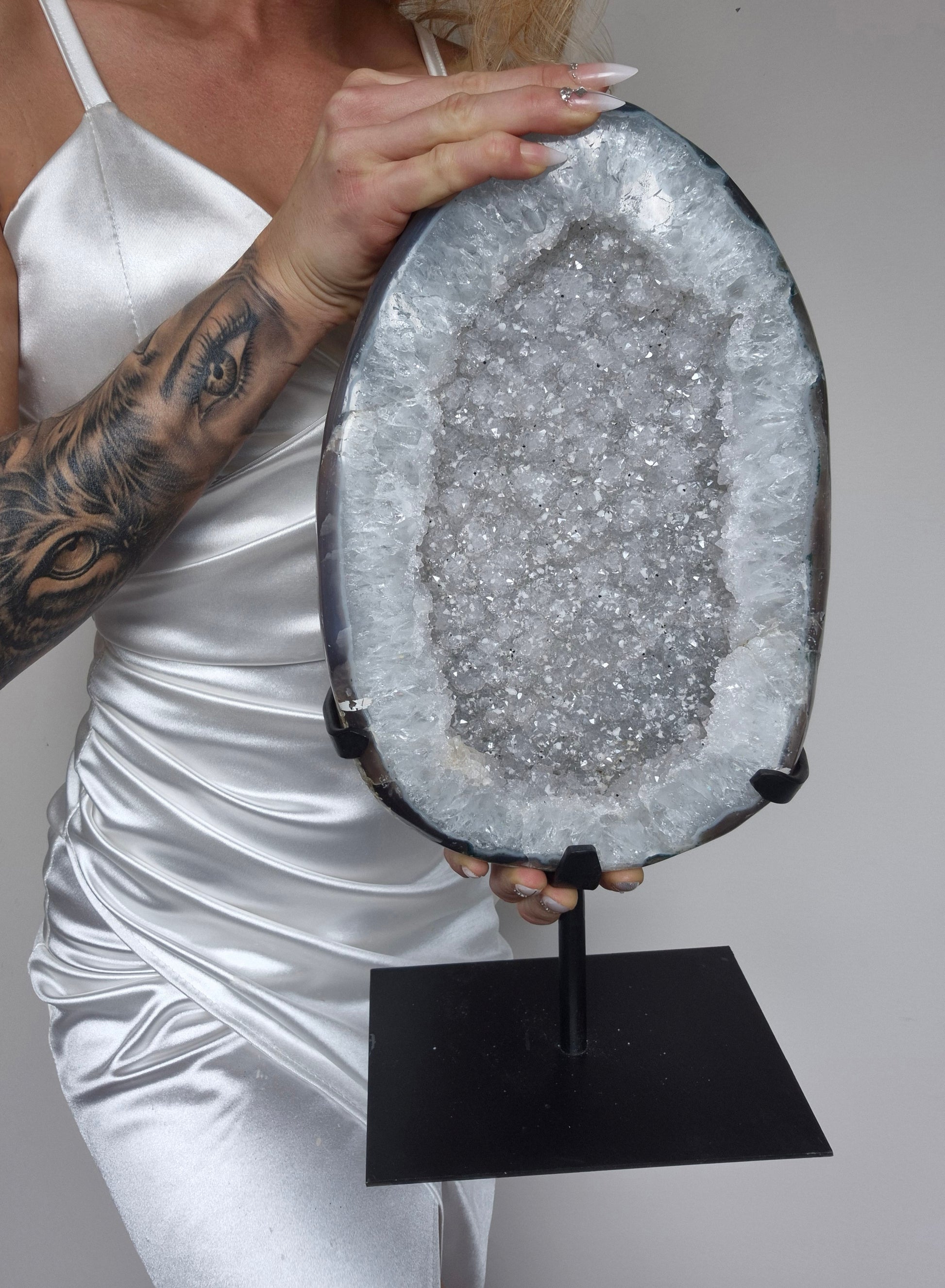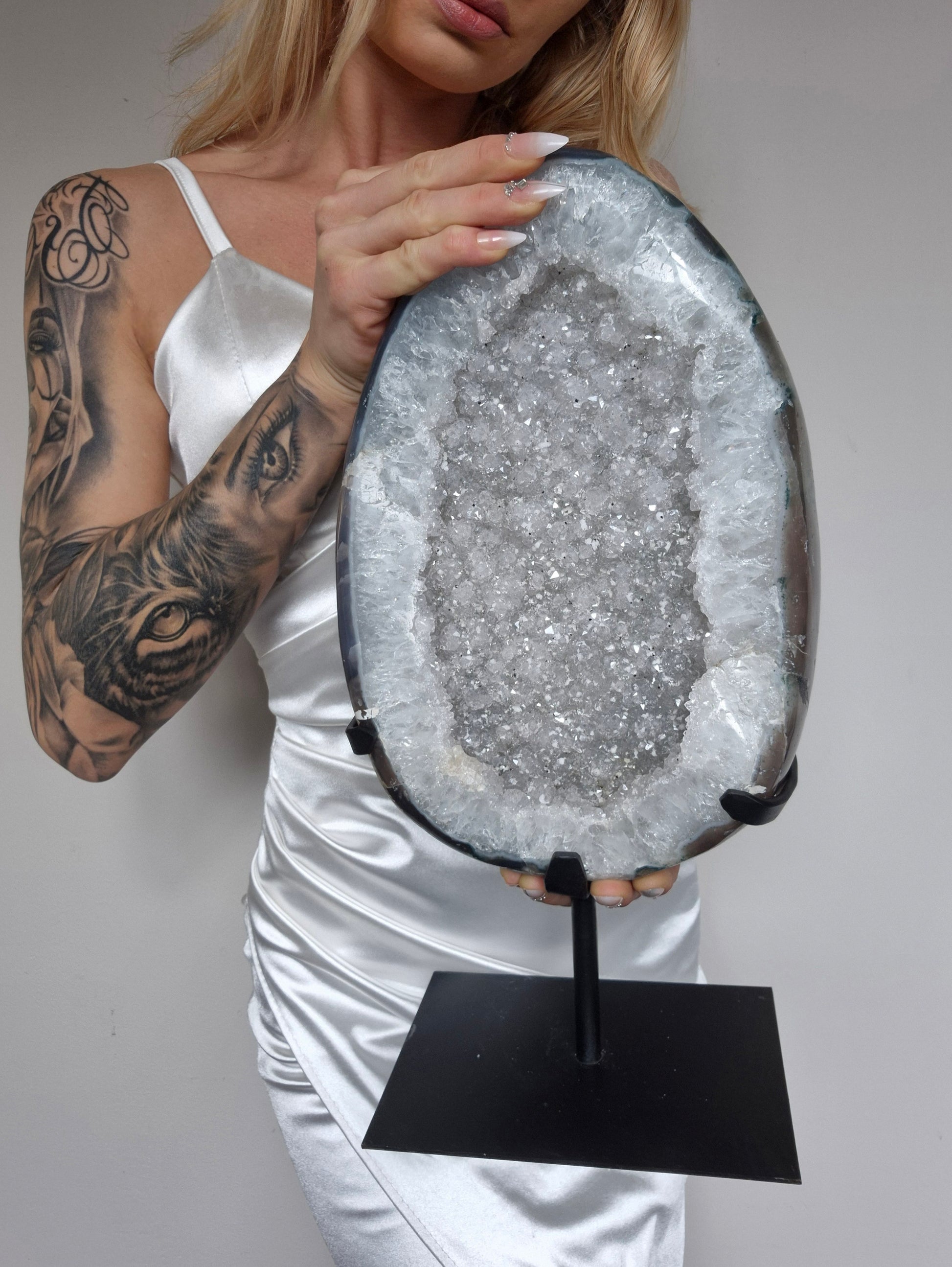 Geef je interieur een unieke touch met deze bijzondere XXL Agaat op standaard. Perfect voor liefhebbers van edelstenen, mineralen en natuurlijke decoratie!