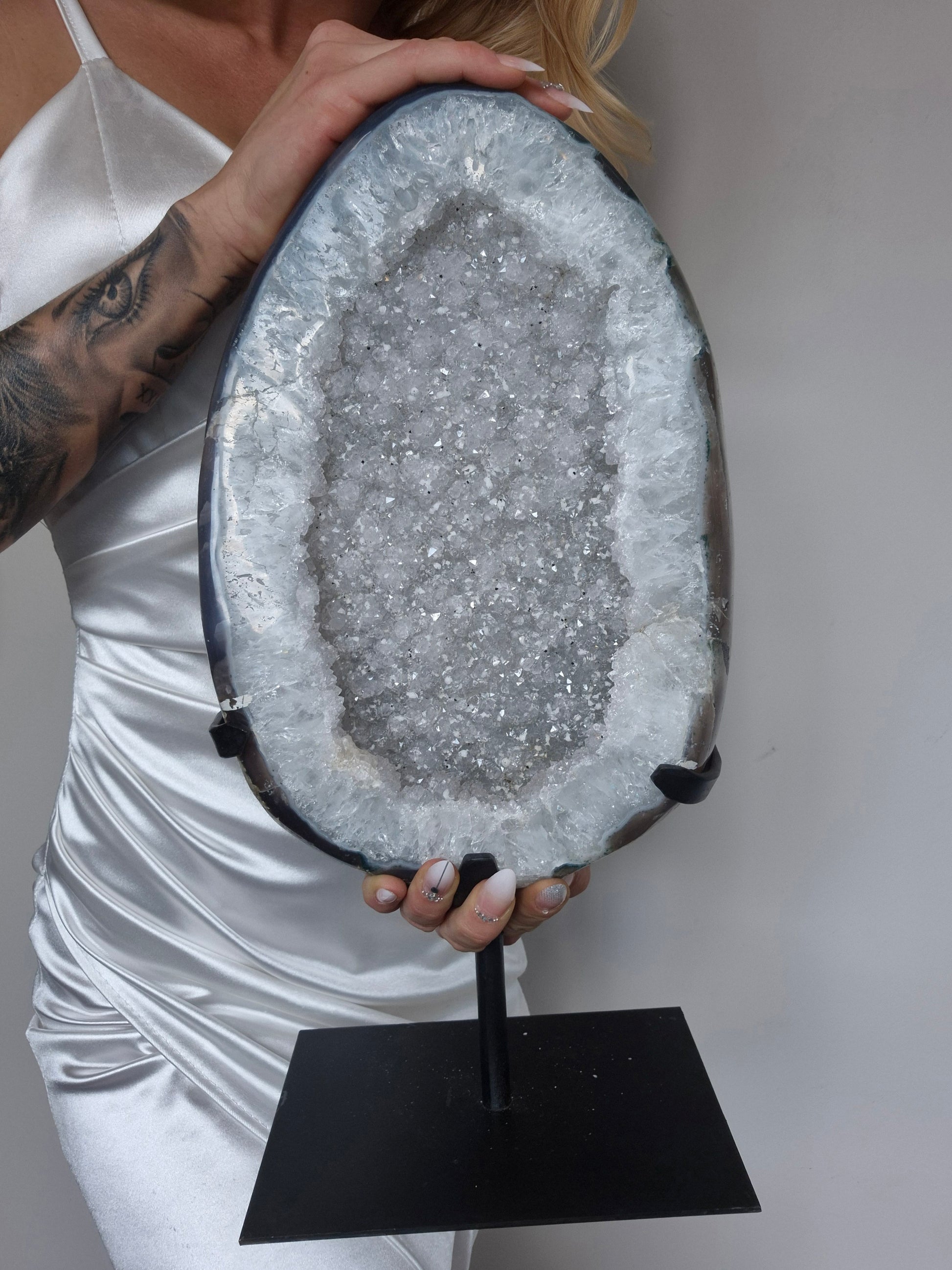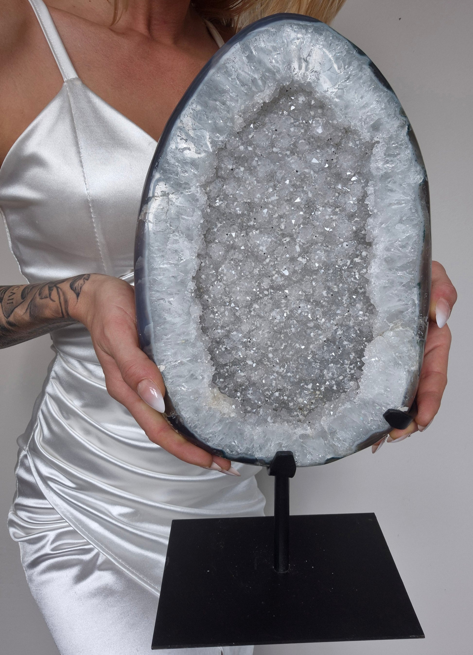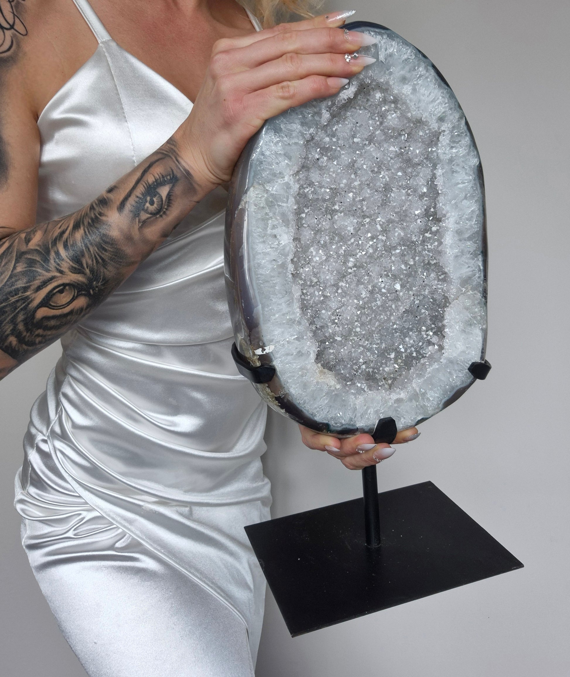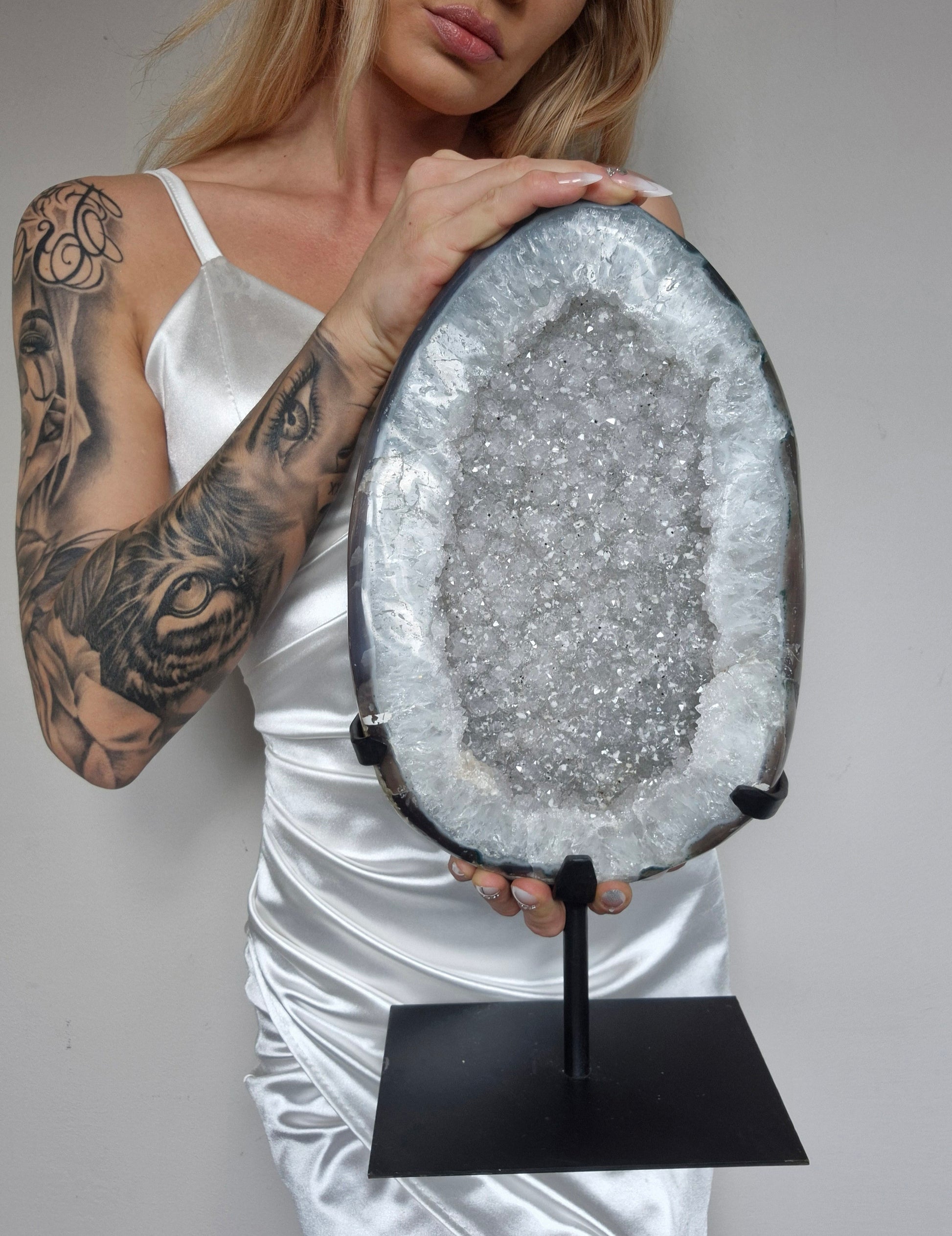 Geef je interieur een unieke touch met deze bijzondere XXL Agaat op standaard. Perfect voor liefhebbers van edelstenen, mineralen en natuurlijke decoratie!